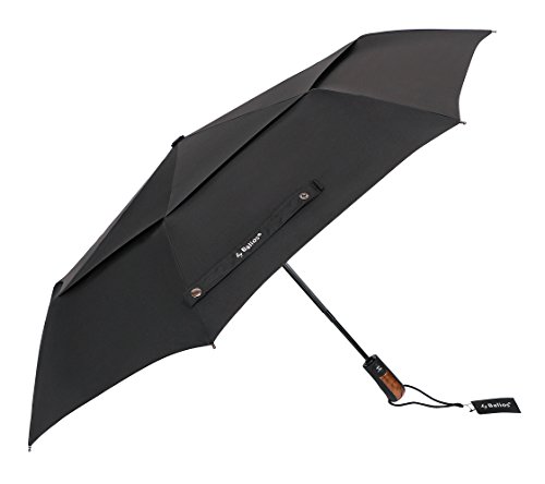 (Designed in the UK) Vented Double Canopy Windproof Umbrella Auto Open & Close Travel Folding 300T Finest Fabric—Men’s Ladies Balios (Black with rubber coated handle) Reviews