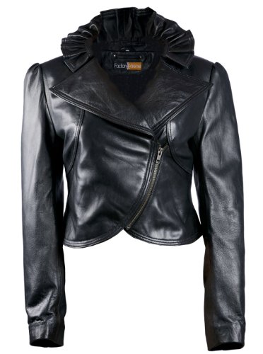 FactoryExtreme Whimsical Victorian Womens Black Biker Leather Jacket, Large, Black