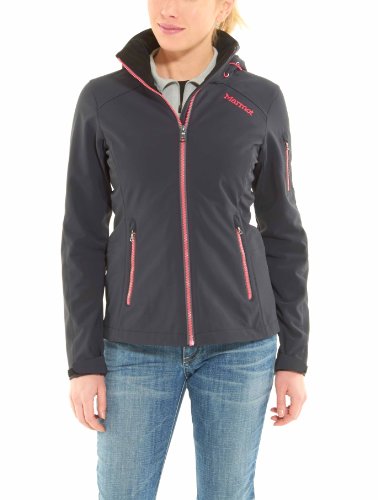 FEATURES of the Women's Bella Jacket by Marmot Marmot M1 Softshell-Water-Resistant, Breathable, Windproof, Durable, Warm, Stretch Windproof, Waterproof, and Breathable 4 way Stretch Fabric Zip-off Storm Hood with Laminated Brim Exposed Riri Water Resistant Center Front Zipper Handwarmer Pockets with Riri Water Resistant Zippers Sleeve Pocket with Riri Water Resistant Zipper Zip-off Powder Skirt-Allows Removal of Powder Skirt When Not Needed Zippered Sunglass Pocket Elastic Draw Cord Hem Adjustable Velcro Cuff Angel-Wing Movement-Allows Full Range of Motion in Arms so Jacket Doesn't Ride Up SPECIFICATIONS: Center Back Length: Medium: 25 7/8" Weight: 1 lb 9 oz / 720 g Materials: Softshell WPB 88% Nylon 12% Elastane 9.2 oz/yd