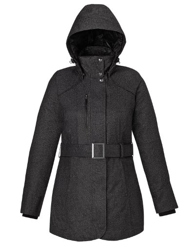 Heat Reflect lining storm flap with metal snaps at top and bottom inside placket thermal collar with soft touch rib neck gaiter two-way centre front zipper lower concealed brushed tricot-lined pockets with reverse coil zippers chest pocket with reverse coil waterproof zipper thermal retention shockcord at hood and waist locker loop at centre back with metal rivet detail inside security pocket audio port access through inside chest pocket zip-off thermal hood with rigid peak and back adjustable D-ring tab soft touch rib storm cuffs with metal snaps adjustable belt with loops for a flattering silhouette