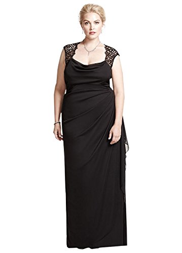 Elegant and ultra sophisticated, you will look like a knock out in this luxurious jersey dress! Cap sleeve bodice and open back create an eye-catching and on trend look. Lace detail adds an ultra-feminine touch to this already magnificent ensemble. Long jersey skirt adds dimension and creates an elongated silhouette. Comes with matching chiffon shawl. Fully lined. Back zip. Imported polyester. Dry clean.